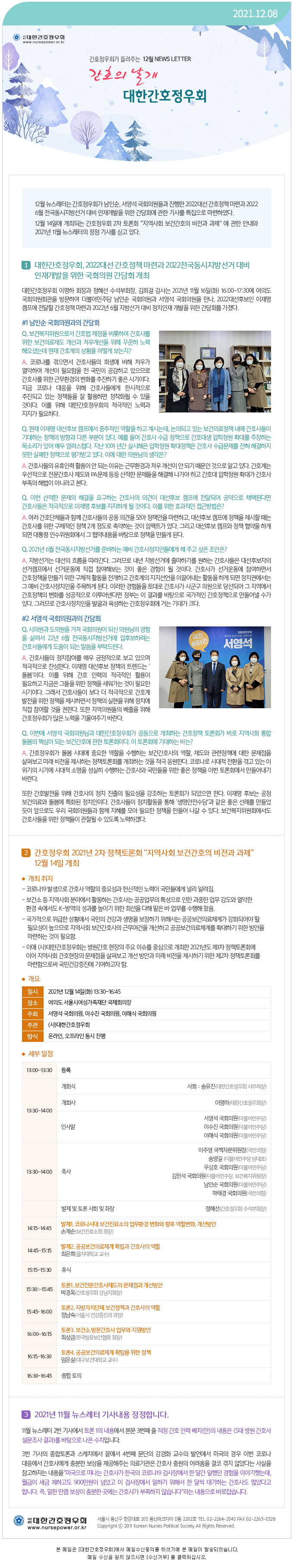 (사)대한간호정우회 2021년 12월 뉴스레터입니다.